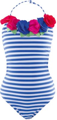 Купальник для девочки от известной испанской марки MayoralОчень удобный и модный купальник. Отличный вариант для пляжного отдыха!Купальник сделан из качественного материала, который очень быстро высыхает. Выполнен в морском стиле.Особенности модели:- цвет: белый, синий;- спина открыта;- лямка регулируется;- материал эластичный;- быстросохнущий;- впереди декорирован текстильными цветами.Дополнительная информация:Состав: 85% полиэстер, 15% эластанКупальник для девочки Mayoral (Майорал) можно купить в нашем магазине.