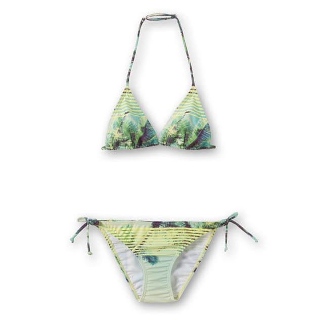 Раздельный купальник с рисунком. Верх от купальника треугольной формы с регулируемыми бретелями сзади. Плавки от купальника соответствующей расцветки с завязками по бокам. Ластовица на подкладке. Ткань устойчива к воздействию хлора. Состав и описание : Материал 85% полиэстера, 15% эластана Марка: R é :Машинная стирка при 30 °C с вещами схожих цветовСтирать и сушить с изнаночной стороныМашинная сушка запрещенаНе гладитьСухая (химическая) чистка запрещена