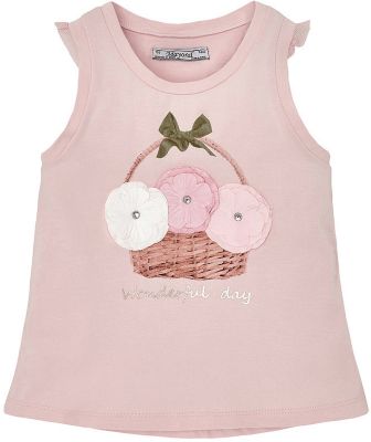 Майка для девочки от известной испанской марки Mayoral подчеркнет индивидуальность юной модницы. Прекрасный вариант на лето.Дополнительная информация:- Мягкая, приятная к телу ткань. - Округлый вырез горловины.- Пройма декорирована оборками. - Нежная объемная аппликация спереди.- Состав: 95% хлопок, 5% эластан.Майку для девочки Mayoral (Майорал) можно купить в нашем магазине.