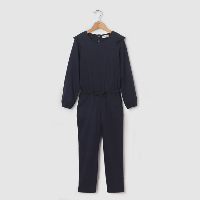Комбинезон из саржи. Круглый вырез и воланы на плечах . Эластичный пояс с небольшим бантиком . 2 передних кармана и 2 ложных кармана сзади . Застежка на кнопки посередине спины. Состав и описание : Материал Саржа, 100% чесаного хлопкаМарка abcd'R Уход :Машинная стирка при 30 °C с вещами схожих цветов.Стирка и глажка с изнаночной стороны.Машинная сушка в умеренном режиме.Гладить при умеренной температуре.
