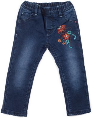 Джинсы для девочки, на флисовой подкладке, пояс на резинке, дополнительно регулируется шнурками, украшены вышивкой.Состав:Верх: 98% хлопок, 2% эластан, Подкладка 100% полиэстер