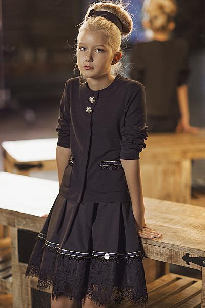 Noble People Юбка"Тесьма и кружево по низу" для девочки 29525-099 синий Noble People