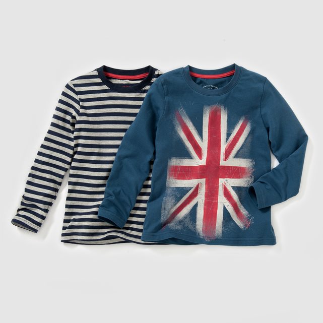 Футболка с длинными рукавами . Комплект из 2 : 1 в полоску + 1 однотонная с изображением английского флага спереди . Круглый вырез. Состав и описание : Материал Джерси 100% хлопка (кроме цвета серый меланж : преобладание хлопка) Марка LES PETITS PRIXУход :Машинная стирка при 30°C с вещами подобных цветов.Стирать и гладить с изнанки.Машинная сушка запрещена.Гладить на низкой температуре.