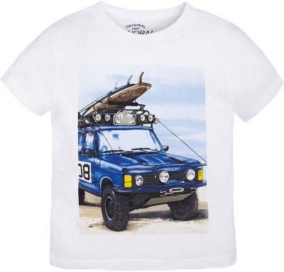Футболка для мальчика от известной испанской марки Mayoral Стильная футболка от Mayoral - отличный вариант одежды на каждый день! Она прекрасно сочетается с джинсами и шортами. Модель выполнена из качественных материалов, отлично сидит по фигуре.Особенности модели:- цвет: белый;- рукава короткие;- украшена принтом;- натуральный материал.Дополнительная информация:Состав: 100% хлопокФутболку для мальчика Mayoral (Майорал) можно купить в нашем магазине.
