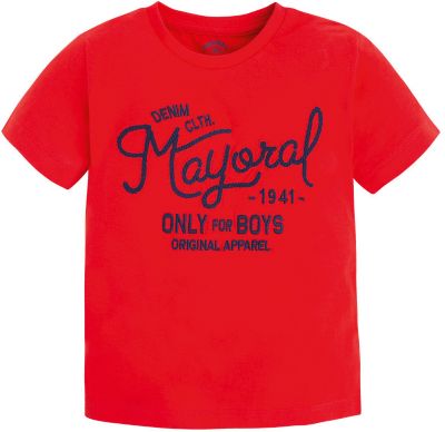 Футболка для мальчика от известной испанской марки Mayoral - прекрасный вариант на каждый день. Модель из натурального хлопка прекрасно смотрится на фигуре. Дополнительная информация:- Мягкая, приятная к телу ткань.- Округлый вырез горловины.- Прямой крой. - Отделка горловины: в мелкий рубчик. - Контрастная надпись спереди. - Состав: 100% хлопок.Футболку для мальчика Mayoral (Майорал) можно купить в нашем магазине.