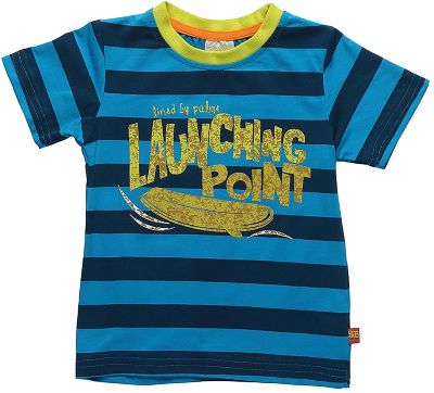 Футболка из трикотажного полотна в полоску с ярким принтом для мальчика. Горловина выполнена из контрастного желтого канта.Состав:95%хлопок 5%эластан