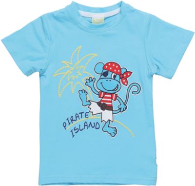 Футболка ярко голубого цвета с оригинальным принтом для мальчика.Состав:95%хлопок 5%эластан