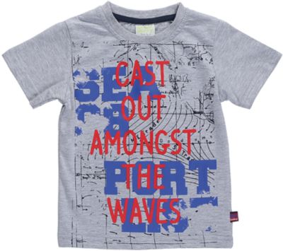 Меланжевая футболка из трикотажной тканис разноцветным принтом для мальчика.Состав:95%хлопок 5%эластан