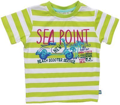 Летняя футболка в яркую полоску для мальчика. Футболка украшена принтом.Состав:95% хлопок 5% эластан