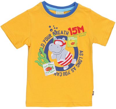 Яркая футболка для мальчика. Горловина из эластичной трикотажной резинки контрастного цвета. Футболка украшена ярким принтом и аппликацией.Состав:95% хлопок 5% эластан