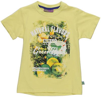 Футболка из трикотажной ткани для мальчика с коротким рукавом. Декорирована оригинальным принтом.Состав:95%хлопок 5%эластан