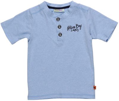 Модная трикотажная футболка для мальчика. Декорирована контрастной отделкой горловины и рукавов. Декоративная застежка на пуговках.Состав:95%хлопок 5%эластан