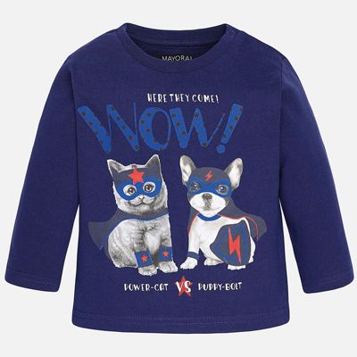 Футболка для мальчика от известного испанского бренда Mayoral. Футболка из 100% хлопка с длинным рукавом и прямым силуэтом; на вороте имеется кнопка-застежка. Спереди принт с забавными животными, благодаря которым ваш ребенок захочет надевать эту футболку снова и снова!Дополнительная информация:-прямой силуэт-длинные рукава-цвет: синий-состав: 100% хлопокФутболку Mayoral можно приобрести в нашем интернет-магазине.