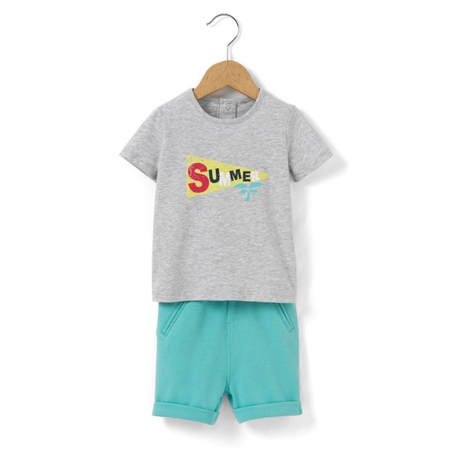 Комплект из двух предметов состоит из футболки из джерси с рисунком спереди и застёжкой на кнопки сзади и шортов из мольтона с эластичным поясом на завязках, с отворотами снизу и 2 боковыми карманами. Состав и описаниеМатериал Футболка 100% хлопок, шорты 60% хлопка, 40% полиэстераМарка R mini УходМашинная стирка при 40 °C в деликатном режиме с вещами схожих цветовСтирать и гладить с изнаночной стороныМашинная сушка при умеренной температуреГладить при средней температуре