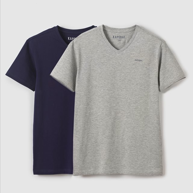Комплект из 2 футболок KAPORAL. Комплект из 2 футболок (серого цвета и цвета морской волны). V-образный вырез. Короткие рукава. Логотип KAPORAL на груди. Состав и описание Материал 96% хлопка, 4% эластана Марка KAPORAL Уход Глажка с изнаночной стороны Машинная стирка при 30 °C с вещами схожих цветов Машинная сушка запрещена Гладить при низкой температуре