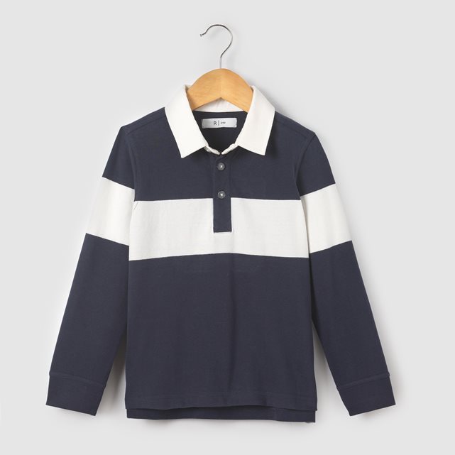 Футболка поло с длинными рукавами в духе рэгби, широкая полоса спереди и цифра "56" на спине. Воротник с застежкой на пуговицы. Шлицы по бокам внизу. Манжеты связаны в рубчик. Состав и описание: Материал: 100% хлопка.Марка: abcd'R. Уход:- Машинная стирка при 30°C, на умеренном режиме с одеждой схожих цветов.- Стирка и глажка с изнанки.- Машинная сушка запрещена.- Гладить при низкой температуре.