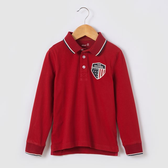 Футболка поло с длинными рукавами с эмблемой американского флага на груди. Шлицы по бокам внизу. Отделка в виде вязки в рубчик. Состав и описание: Материал: джерси 100% хлопка.Марка: abcd'R. Уход:- Машинная стирка при 40°С с вещами схожих цветов.- Стирка и глажка с изнанки.- Машинная сушка запрещена.- Гладить при низкой температуре.