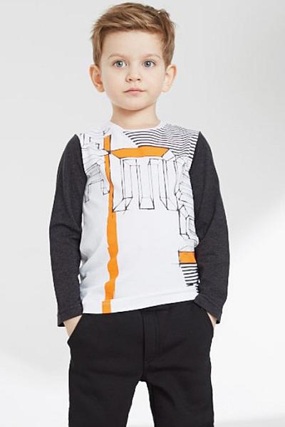 Футболка для мальчика SCFWB-638-14587-200 белый Silver Spoon - описаниеЛонгслив линейки Геометрия для мальчиков из осенне-зимней коллекции Casual Silver Spoon. Белый лонгслив с контрастными черными рукавами и оранжевыми элементами отделки. Цветовая гамма и авторские принты Геометрия объединяют все предметы линейки. Внимание к деталям отличает бренд и в моделях для внешкольной жизни детей: горловины всех лонгсливов окантованы тканевой бейкой - это выглядит эстетично и дорого, а швы не натирают кожу. Материал - качественный тонкий джерси со специальной энзимной обработкой, которая обеспечивает носкость и стойкость к истиранию. Изделия из него не скатываются и не деформируются даже после многочисленных стирок. Современный принт на водной основе не выцветает и не боится утюга.Лонгслив линейки Геометрия для мальчиков из осенне-зимней коллекции Casual Silver Spoon. Белый лонгслив с контрастными черными рукавами и оранжевыми элементами отделки. Цветовая гамма и авторские принты Геометрия объединяют все предметы линейки. Внимание к деталям отличает бренд и в моделях для внешкольной жизни детей: горловины всех лонгсливов окантованы тканевой бейкой - это выглядит эстетично и дорого, а швы не натирают кожу. Материал - качественный тонкий джерси со специальной энзимной обработкой, которая обеспечивает носкость и стойкость к истиранию. Изделия из него не скатываются и не деформируются даже после многочисленных стирок. Современный принт на водной основе не выцветает и не боится утюга.