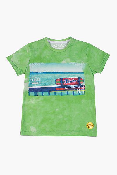 Футболка для мальчика BYB600 зелёный Y-clu' - описаниеМодная футболка с короткими рукавами для мальчика из коллекции бренда Y-clu'. Модель свободного кроя, круглый ворот с окантовкой из основной ткани и усиленный специальным кантом, который предотвращает натирание кожи и растяжение горловины. Футболка Y-clu' из хлопка с добавлением полиэстера приятна к телу, ткань не вызывает аллергию, не деформируется, выдерживает большое количество стирок. Модель интересной расцветки – зеленый цвет размыт белым, что создает эффект акварельных красок. На груди футболку украшает стильный принт с изображением морского побережья и доски для серфинга. Ребенок будет себя комфортно чувствовать на прогулке или занятиях спортом в легкой «дышащей» футболке, которая составит гармоничный комплект с бремудами, шортами или спортивными брюками от бренда Y-clu'. Для правильного ухода за изделием рекомендуется машинная стирка в деликатном режиме при температуре не выше 30 градусов.