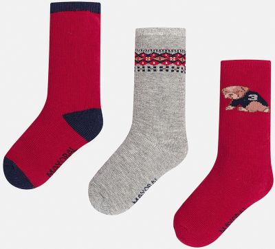 Набор из 3 пар носков для мальчиков от известного испанского бренда Mayoral. В комплекте носки разной расцветки: красный с темно-синими пяткой, носком и резинкой, серый с красно-синим узором сверху, красный с рисунком "собачка". Носки сделаны из специальных дышащих материалов, чтобы ноги ребенка не потели.Дополнительная информация:-разная расцветка-состав: 77% хлопок, 20% полиамид, 3% эластанКомплект носков Mayoral можно приобрести в нашем интернет-магазине.