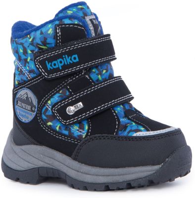 Ботинки для мальчика режим: до -20 градусов. Степень утепления – средняя.* Температурный режим указан приблизительно — необходимо, прежде всего, ориентироваться на ощущения ребенка. Ботинки не только красивые снаружи, но и тёплые внутри. С ними прогулки вашего малыша станут еще интереснее и удобнее,ведь они не будут натирать ножки и позволят ребёнку двигаться без ограничений. Подарите вашему малышу незабываемые зимние прогулки. Характеристика:-Цвет: черный+синий с узорами-Материал: снаружи- текстиль + искусственная кожа, подкладка:текстиль(шерсть 80%)-Застёжка: две липучки-Бренд: KAPIKA(КАПИКА)-Сезон: осень-зимаБотинки для мальчика KAPIKA вы можете приобрести в нашем интернет- магазине.
