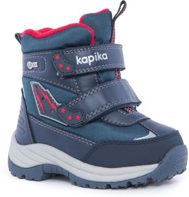 Ботинки для мальчика режим: до -20 градусов. Степень утепления – средняя. * Температурный режим указан приблизительно — необходимо, прежде всего, ориентироваться на ощущения ребенка.Ботинки не только красивые снаружи, но и тёплые внутри. С ними прогулки вашего малыша станут еще интереснее и удобнее,ведь они не будут натирать ножки и позволят ребёнку двигаться без ограничений. Характеристика:-Цвет: синий+красный-Материал: снаружи- текстиль + искусственная кожа, подкладка:текстиль(шерсть 80%)-Застёжка: две личпучки-Бренд: KAPIKA(КАПИКА)-Сезон: осень-зимаБотинки для мальчика KAPIKA вы можете приобрести в нашем интернет- магазине.