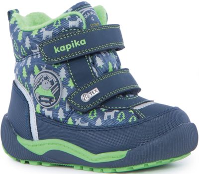 Ботинки для мальчика режим: до -20 градусов. Степень утепления – средняя.* Температурный режим указан приблизительно — необходимо, прежде всего, ориентироваться на ощущения ребенка.Ботинки не только красивые снаружи, но и тёплые внутри. С ними прогулки вашего малыша станут еще интереснее и удобнее,ведь они не будут натирать ножки и позволят ребёнку двигаться без ограничений. Подарите вашему малышу незабываемые зимние прогулки. Характеристика:-Цвет: зелёный+синий -Материал: снаружи- текстиль + искусственная кожа, подкладка:текстиль(шерсть 80%)-Застёжка: две липучки-Бренд: KAPIKA(КАПИКА)-Сезон: осень-зимаБотинки для мальчика KAPIKA вы можете приобрести в нашем интернет- магазине.