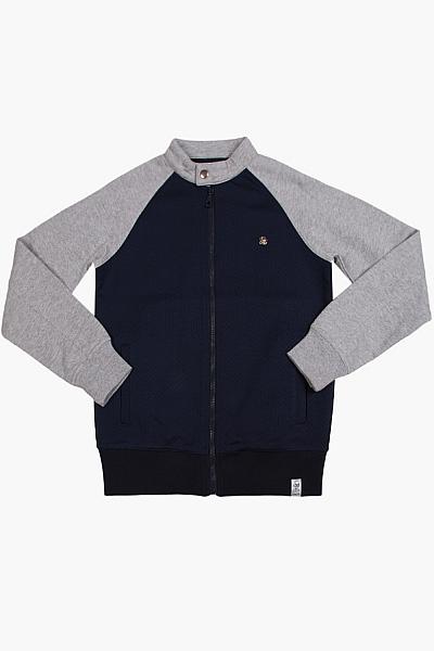 Толстовка для мальчика Street Gang на молнии, основная часть темного цвета с красивой текстурой, на груди металлический лейбл, два передних внутренних кармана с окантовкой под основной тон, стойка воротник на кнопке и рукав реглан длинный более светлого цвета, манжеты и пояс более темного цвета на широкой резинке. Модель идеально сочетается со спортивными брюками и джинсами, подходит для ежедневной носки и активного отдыха за городом, подберите детали низа из этой же коллекции весна – лето от Street Gang.