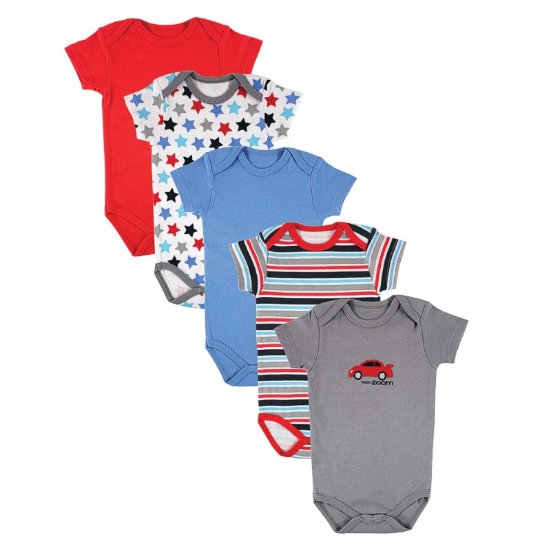 Комплект из пяти очаровательных боди с коротким рукавом для новорождённого от бренда Luvable Friends. Все боди в комплекте имеют разную цветовую гамму и принты, что вносит яркое разнообразие в гардероб любого малыша. Боди изготовлены из мягкого и приятного на ощупь хлопка-интерлок. Специальный крой горловины (с "самораскрывающимися" плечиками) позволяет без труда надеть боди на ребёнка, а кнопочная застёжка по низу изделия делает переодевание и смену подгузника простым и лёгким занятием.