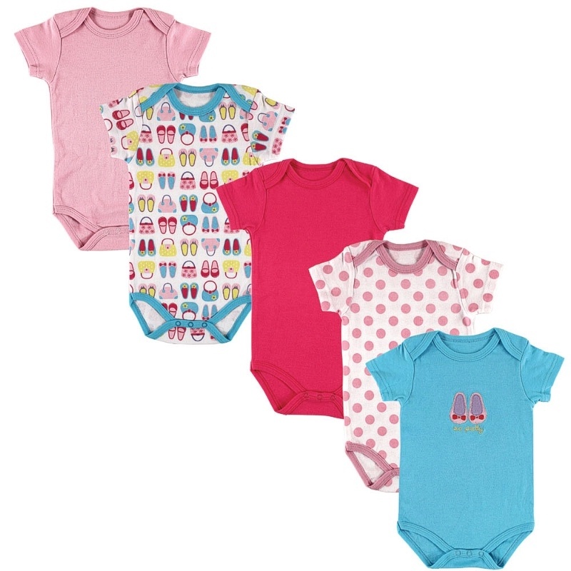 Комплект из пяти очаровательных боди с коротким рукавом для новорождённой от бренда Luvable Friends. Все боди в комплекте имеют разную цветовую гамму и принты, что вносит яркое разнообразие в гардероб любой малышки. Боди изготовлены из мягкого и приятного на ощупь хлопка-интерлок. Специальный крой горловины (с "самораскрывающимися" плечиками) позволяет без труда надеть боди на ребёнка, а кнопочная застёжка по низу изделия делает переодевание и смену подгузника простым и лёгким занятием.