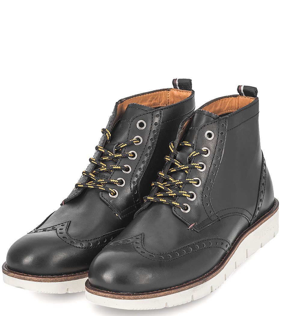 Ботинки Tommy Hilfiger- происхождение бренда: США- производство: Португалия- материал: верх - натуральная кожа, подкладка и стелька - натуральная кожа, подошва - искусственный материал- сезон: демисезон- особенности модели: втачная стелька, ботинки завязываются на шнурки, высота голенища - 11 см, обхват голенища - 26 см (для размера 41)- цвет: черный- дополнительно: черные шнурки