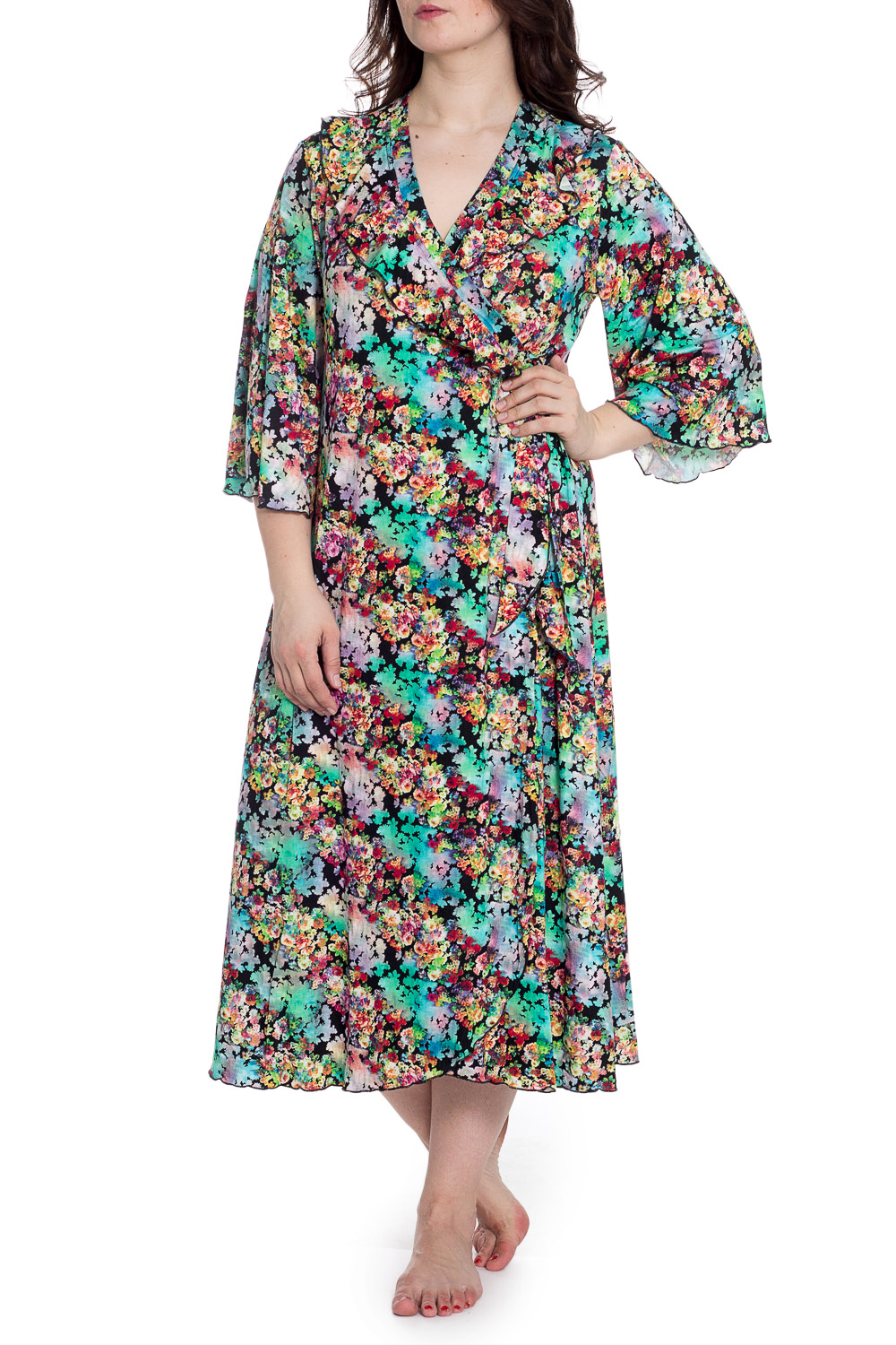 Женский халат H(36)-GAT, материал вискоза, страна Россия, цена 4790 руб. Халат на запах, полуприлегающего силуэта, расклешенный к низу, длиной до щиколотки. Линия талии завышена. На полочках, в области груди воланы. Рукав в...