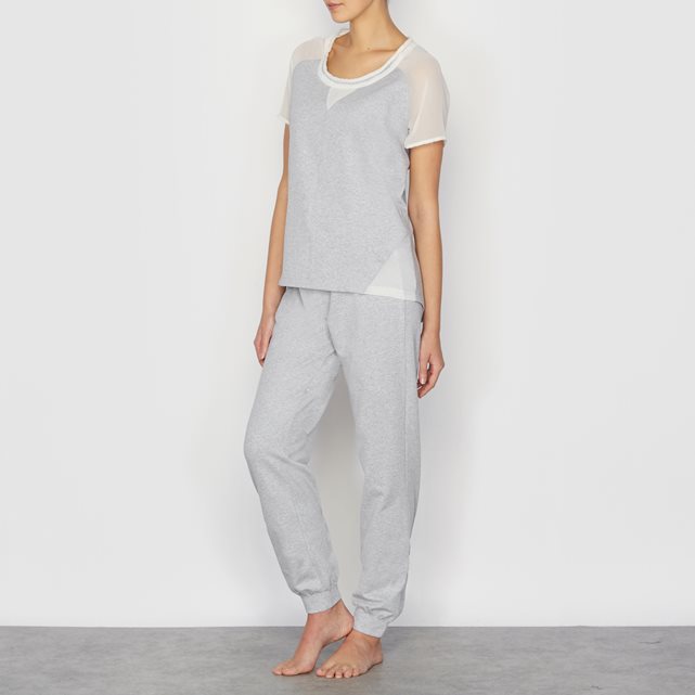 Пижама Love Joséphine. Футболка из двух материалов с коротими рукавами: вставки из вуали на рукавах, передняя часть и спинка из мольтона. Круглый вырез. Приспущенные плечи. Брюки с эластичным поясом и завязками. 2 косых кармана. Низ в рубчик. Состав & детали: Материал: вуаль и мольтон, 100% хлопок.Брюки из мольтона, 100% хлопок.Марка: Love Joséphine Уход :Машинная стирка при 30° на умеренном режиме.Стирать и гладить с изнаночной стороны.Не сушить в машинке.Гладить при слабой температуре.