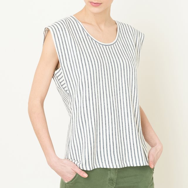 Футболка HARRIS WILSON - модель CALICOT из крашеного хлопкового джерси в полоску, с застёжкой на пуговицы сзади. Округлый вырез-лодочка. Без рукавов. Застежка на пуговицы сзади. Прямой низ. Состав и описание Материал : 100% хлопок Марка : HARRIS WILSON