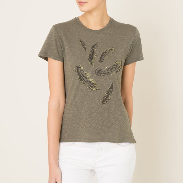 Футболка BERENICE - модель KARINE с рисунком пайетками перья из джерси фламе . Круглый вырез. короткие рукава. Узор и рисунок пайетками спереди. Разрезы по бокам. Состав и описание Материал : джерси, 100% хлопок Марка : BERENICE