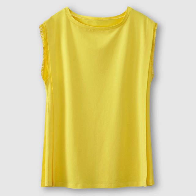Футболка без рукавов. Отделка бейкой проймы. Прямой свободный покрой, подчёркнутый жёсткой складкой по бокам спереди и сзади Состав и описаниеМарка : LES PETITS : 100% хлопкаДлина : 60 смУходСтирка при 30° с изделиями схожих цветовСтирать и гладить с изнанки Не гладить кружево