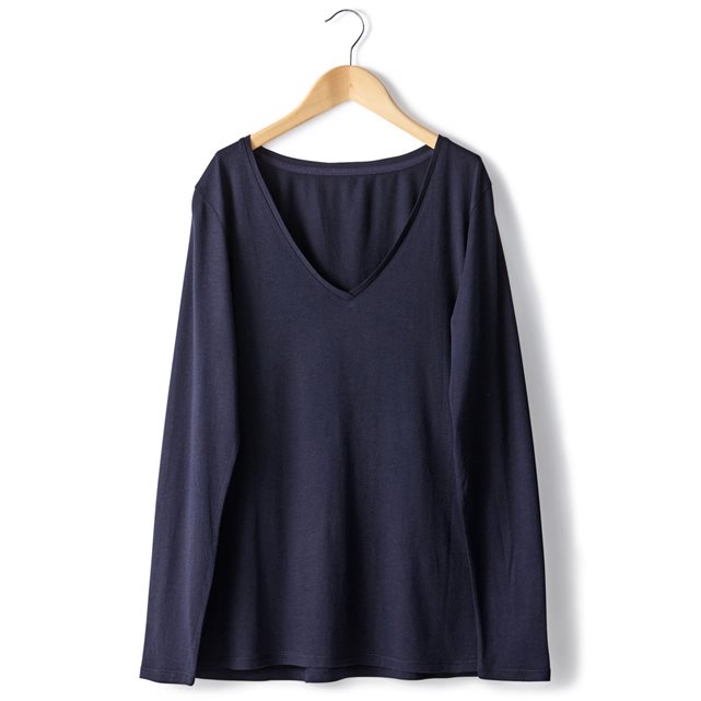 Футболка с длинными рукавами 50% хлопка, 50% модала. V-образный вырез.Длина 65 см.
