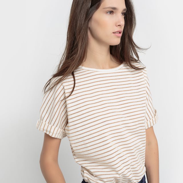 Футболка , модель TRUDAINE от KARL MARC JOHN. Короткие рукава с небольшим отворотом . Круглый вырез. Пройма рукава- летучая мышь . Состав & ДеталиМатериал 82% хлопка, 11% полиэстера, 7% металлизированных волокон Марка KARL MARC JOHN Уход Следуйте рекомендациям по уходу, указанным на этикетке изделия.