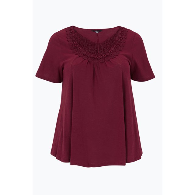Топ из мягкого струящегося трикотажа джерси с небольшим рельефом. Расширяющийся к низу покрой. Вставка из вязаного крючком кружева вокруг выреза спереди. Длина ок.72 см. для размера 42/44. 100% хлопка.Покрой: стандартный.Деликатная стирка при 40°.Обратите внимание, на нашем сайте размеры шведского бренда ELLOS (Элос) приведены к французским стандартам: т.е. на сайте и на упаковке товара указан французский размер, но на вшитом ярлыке товара будет указан размер производителя. Заказывайте ваш обычный французский размер.