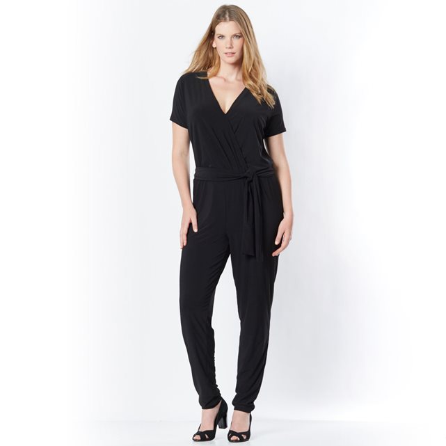 Комбинезон. Незаменимый элемент гардероба в новом сезоне! Комбинезон из струящегося трикотажа отлично будет смотреться с обувью на каблуках! Вырез с запахом. Отрезной по талии, пояс с завязками. Брючины собраны внизу. Трикотаж, 95% полиэстера, 5% других волокон. Длина по внутр.шву 78 см, ширина по низу 13 см.