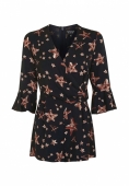 Комбинезон с рисунком. 100% вискоза. V-образный вырез с бантом. Длинные рукава, присобранные по низу с застежкой на маленькие пуговицы. Застежка на молнию спереди. Длина по внутр.шву 75 см. Ширина по низу: 16 см.