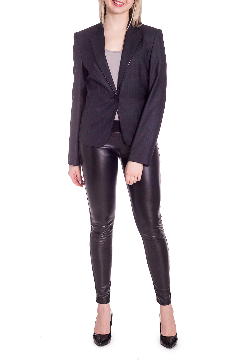 Женский пиджак GK(6)-BVG, материал костюмная ткань, страна Россия, цена 2645 руб. Классический жакет с V-образным вырезом горловины и кожаной окантовкой. Жакет с застежкой на одну пуговицу.В изделии использованы цвета: темно-серыйРо