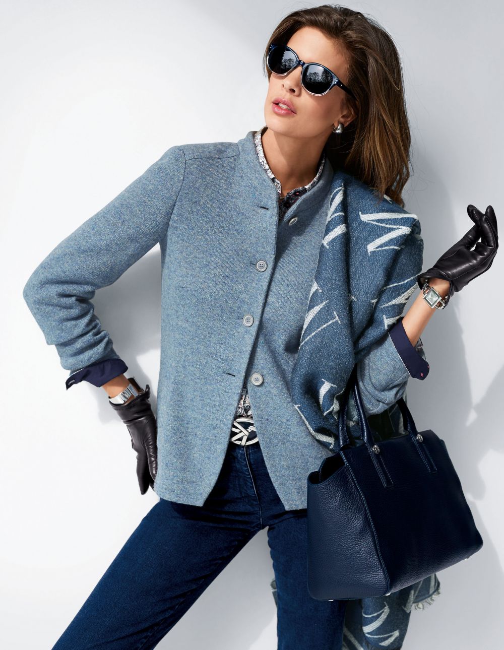 Артикул: 574437. . Описание: Невероятно мягкий и лёгкий трикотаж из великолепной меланжевой пряжи. Женственный жакет с маленьким воротником стойкой, длинными рукавами и прорезными карманами выгодно подчёркивает достоинства и скрывает недостатки фигуры. Трикотаж из приятного хлопка, согревающей шерсти и мягкого шёлка дарит коже роскошные ощущения.. . Параметры изделия: Длина ок. 58 см, выше линии бедра.. Страна дизайна: Германия. @Состав: 34%, Хлопок, 32%, Шерсть, 15%, Полиамид, 11%, Натуральный шелк, 8%, полиакрил.. Страна производства:Румыния.