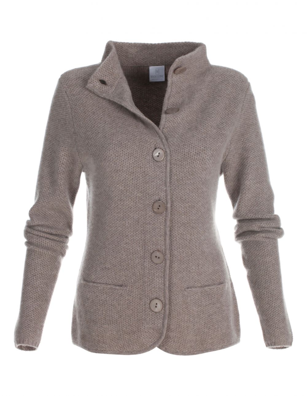 Артикул: 391120. . Описание: Трикотажный жакет в лаконичном стиле, эффектно оттеняющий красоту и великолепие изысканного материала. Пушистая и нежная, связанная в 4 нити роскошная пряжа дарит изумительную мягкость и тепло! Стильная модель из изысканного трикотажа с красивой фактурой облегает фигуру. Жакет дополнен модным воротником-стойкой, плавно закруглённым нижним краем и большими, броскими перламутровыми пуговицами, длинными рукавами и накладными карманами, задающими модный акцент. Мягкий трикотаж, невероятно приятный на ощупь, дарит приятное тепло.. . Параметры изделия: Длина ок. 61 см, прикрывает бедра.. Страна дизайна: Германия. @Состав: 100%, Кашемир. Пуговицы 100%, Перламут.. Страна производства:Китай.