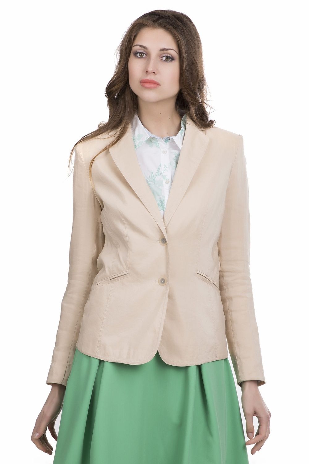 Жакет Apanage бежевый. Стильный и очень нежный, этот жакет создан для того, чтобы восхищать окружающих и свою обладательницу. В нем вы будете выглядеть элегантно и непринужденно. А еще эта вещь дарит женственность, что так важно в нашем современном мире. Прорезные диагональные карманы и большой отложной воротник завершают этот великолепный образ. Манжеты пиджака снабжены красивыми пуговицами. Состав: лен плюс купро.
