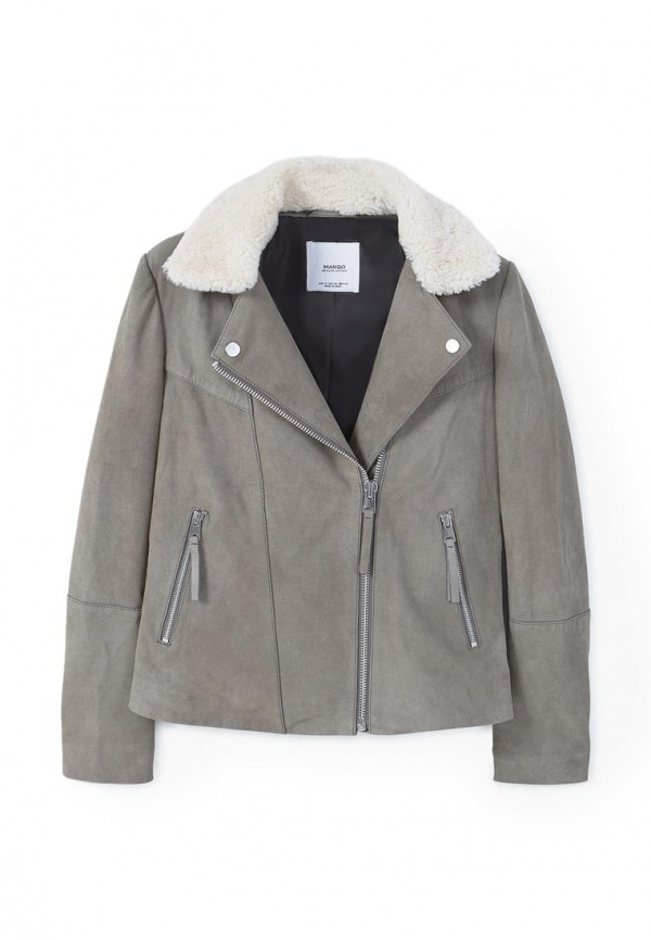 Куртка кожаная Mango. Цвет: серый. Сезон: Весна-лето 2017.