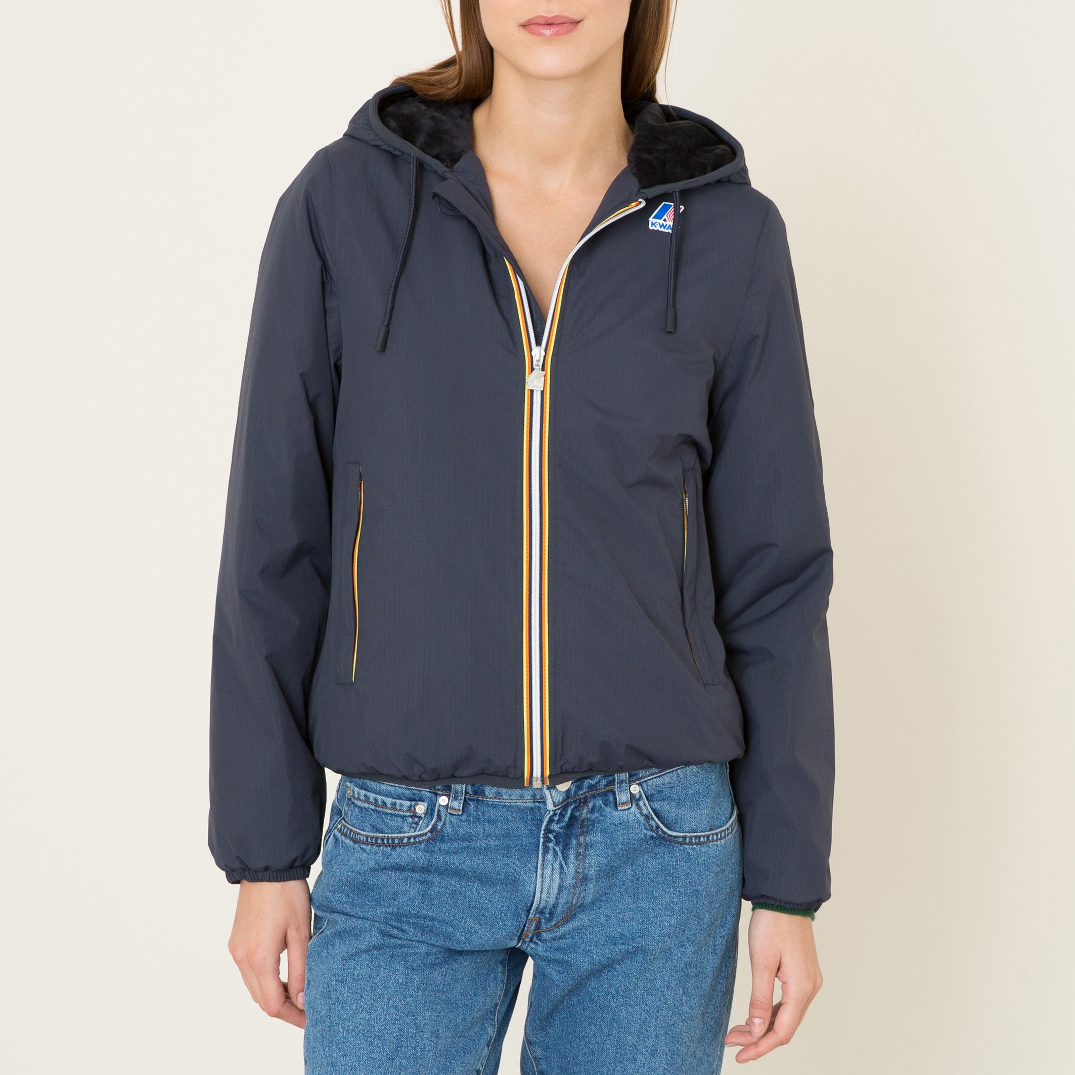 Короткая парка KWAY - с капюшоном и застежкой на молнию. Края капюшона отделаны хлопковой бейкой, капюшон регулируется шнурком. Планка застежки в полоску на молнию Kway. 2 прорезных кармана на молнии спереди. Теплая подкладка. Теплый наполнитель. Состав и описание :Материал : 100% полиамидПодкладка 100% полиэстерНаполнитель 100% полиэстерМарка : KWAY