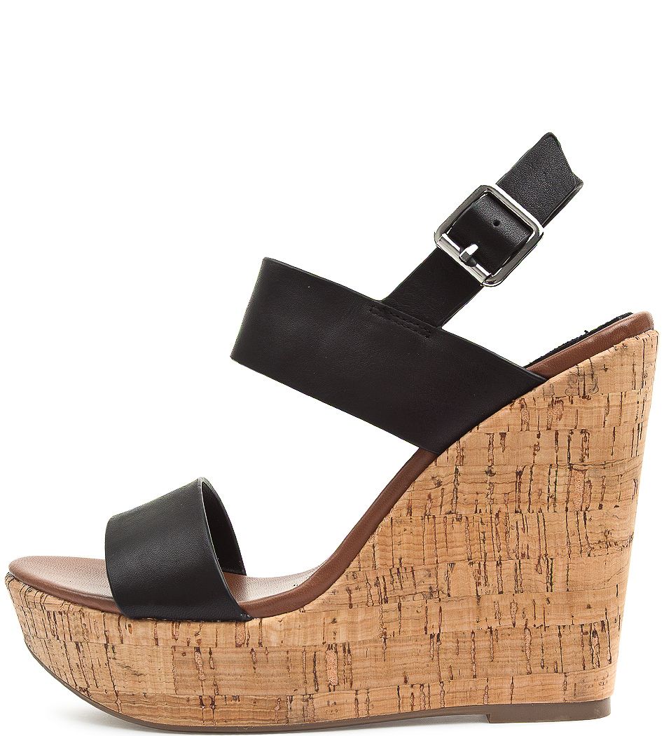 Босоножки STEVE MADDEN- происхождение бренда: США- производство: Китай- материал: верх - натуральная кожа, подкладка и стелька - искусственный материал, подошва - искусственный материал- сезон: лето- особенности модели: босоножки фиксируются регулируемым ремешком, расположенным сбоку, высота танкетки - 13 см, высота платформы - 3 см- цвет: черный