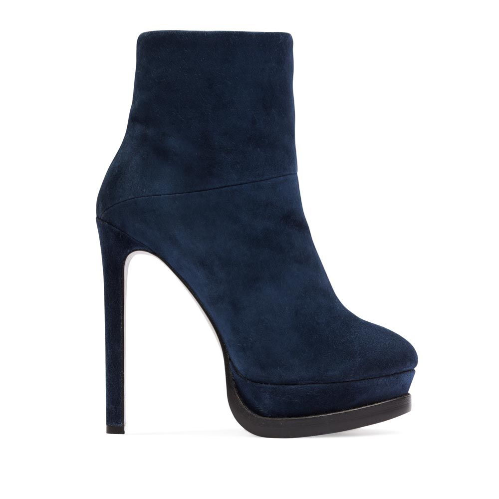 Ботильоны из замши цвета ночного неба на высоком каблуке